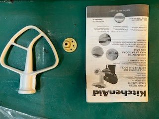 White KitchenAid Classic Mixer with two attachments and owners manual. Fully functioning.