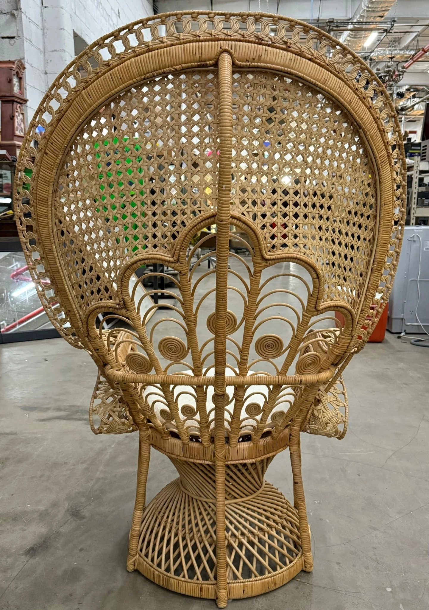 Beautiful and tall rattan chair. Stands 58" tall. Natural color. In great shape.